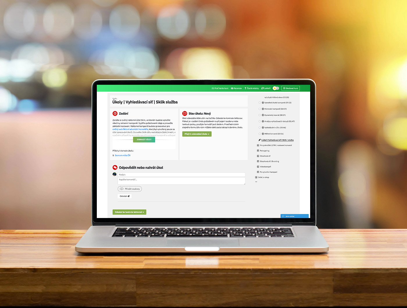 U mnoha kapitol si vše procvičíte formou úkolu z praxe, a to vše s podporou lektora, který vám pomůže úkol úspěšně vypracovat. Po každém odevzdání úkolu vám přijde jeho vyhodnocení a návrhy na zlepšení.