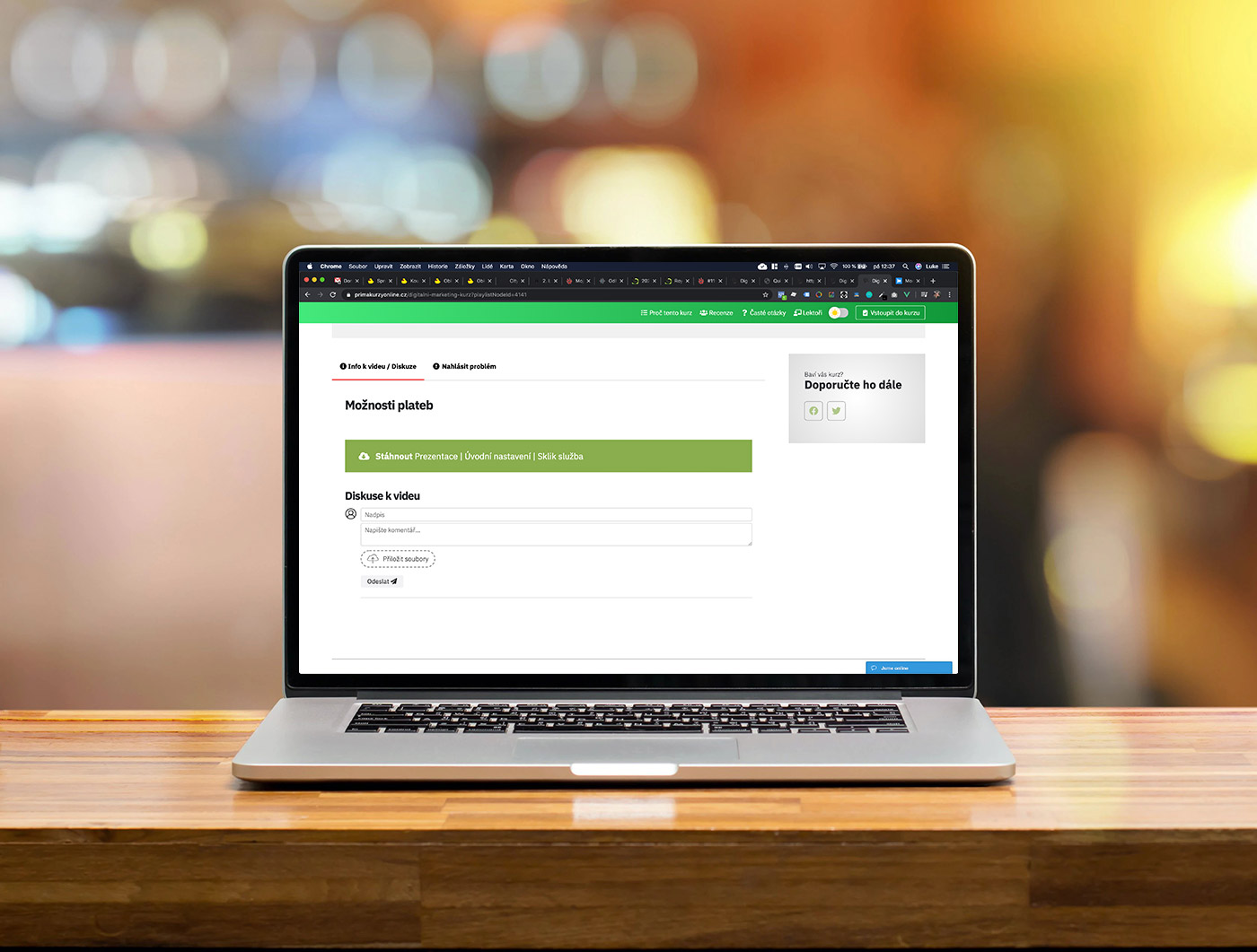 V průběhu sledování videí se můžete v diskuzi kdykoliv zeptat lektora na danou problematiku. Diskuze je veřejná pouze pro studenty, u mnohých videí tak navíc dostáváte další tipy, které k danému tématu řeší ostatní studenti.