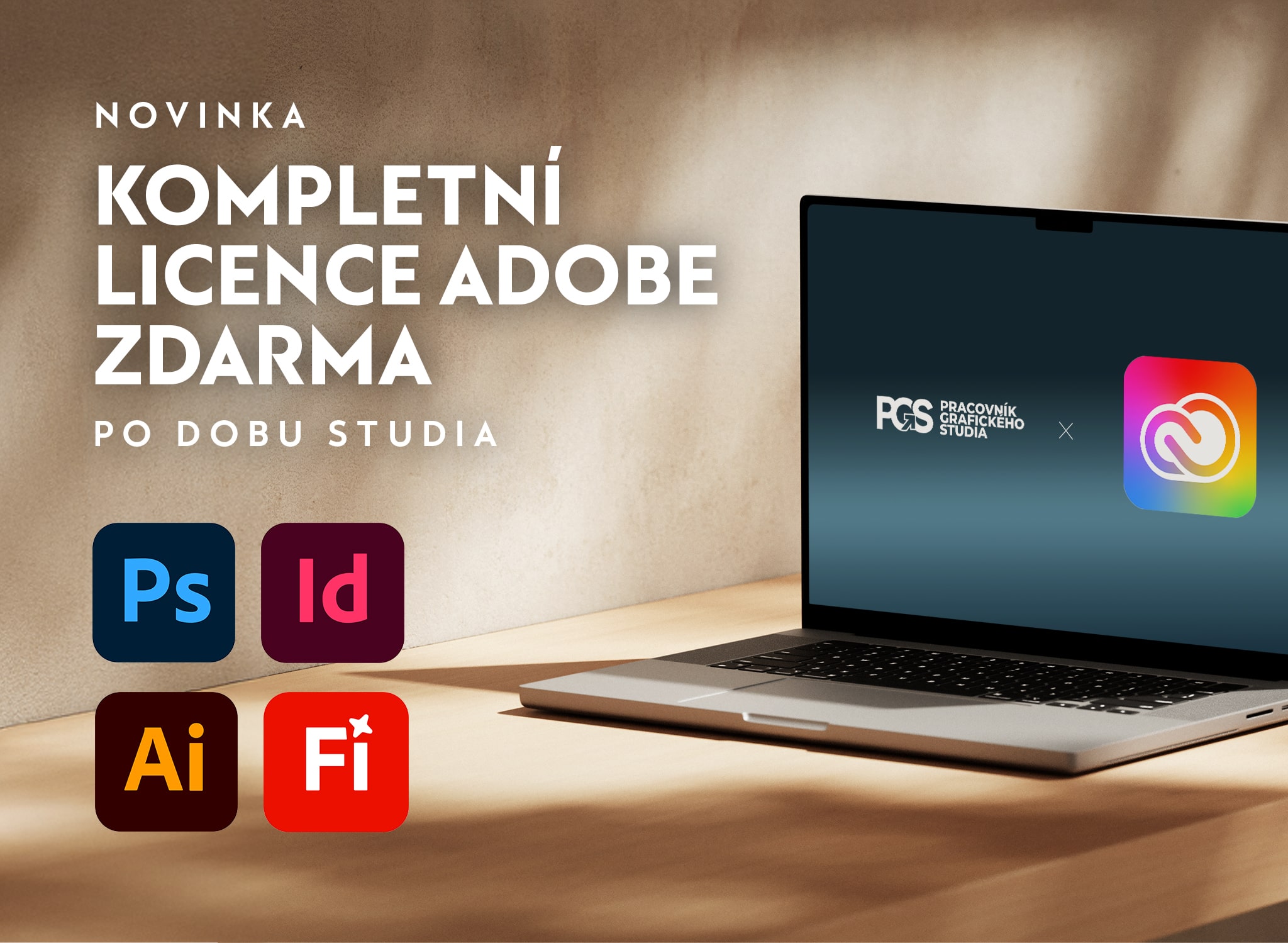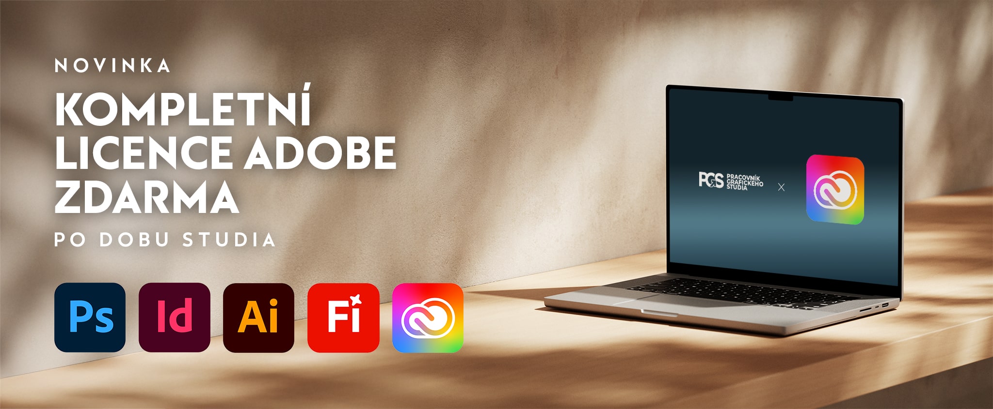 Novinka! Pro všechny studenty kurzu Pracovník grafického studia nyní nabízíme dvouměsíční licenci zdarma. Licence pokrývá celou dobu studia kombinovaného kurzu – získáte tak přístup ke všem materiálům i nástrojům bez dalších poplatků.
